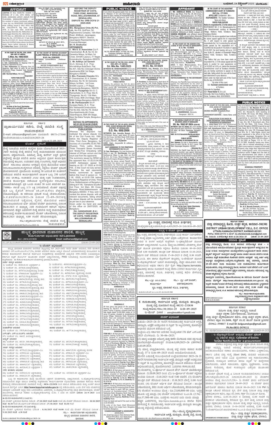 BENGALURU Page: 4 September 24, 2025 << First << 4 >> Last >> Page 1Page 2Page 3Page 4Page 5Page 6Page 7Page 8Page 9Page 10Page 11Page 12Page 13Page 14 × BENGALURU << First << 4 >> Last >> 1234567891011121314 SUB EDITIONS 4