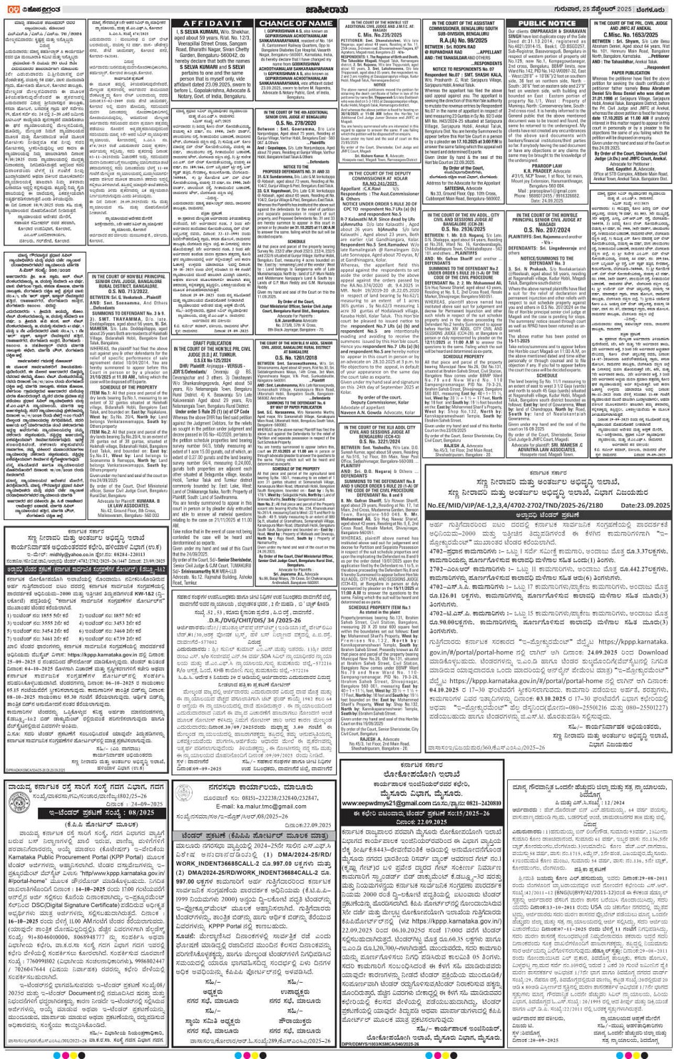 BENGALURU Page: 4 September 25, 2025 << First << 4 >> Last >> Page 1Page 2Page 3Page 4Page 5Page 6Page 7Page 8Page 9Page 10Page 11Page 12Page 13Page 14Page 15Page 16 × BENGALURU << First << 4 >> Last >> 12345678910111213141516 SUB EDITIONS 4