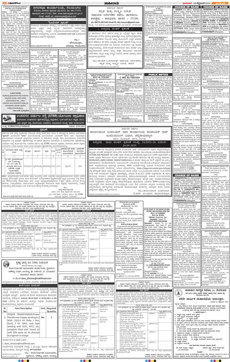 BENGALURU Page: 4 September 28, 2025 << First << 4 >> Last >> Page 1Page 2Page 3Page 4Page 5Page 6Page 7Page 8Page 9Page 10Page 11Page 12 × BENGALURU << First << 4 >> Last >> 123456789101112 SUB EDITIONS 4