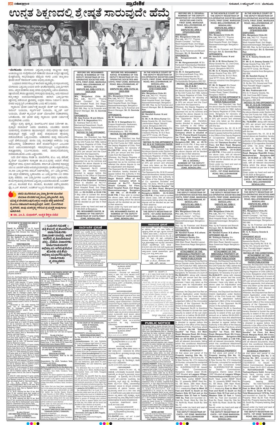 BENGALURU Page: 8 October 09, 2025 << First << 8 >> Last >> Page 1Page 2Page 3Page 4Page 5Page 6Page 7Page 8Page 9Page 10Page 11Page 12Page 13Page 14 × BENGALURU << First << 8 >> Last >> 1234567891011121314 SUB EDITIONS 8