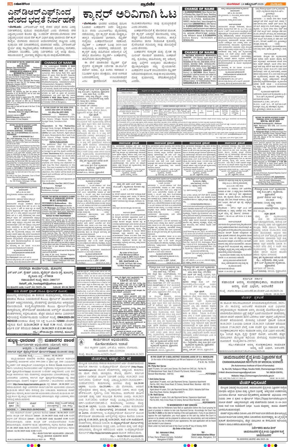 BENGALURU Page: 4 October 14, 2025 << First << 4 >> Last >> Page 1Page 2Page 3Page 4Page 5Page 6Page 7Page 8Page 9Page 10Page 11Page 12 × BENGALURU << First << 4 >> Last >> 123456789101112 SUB EDITIONS 4