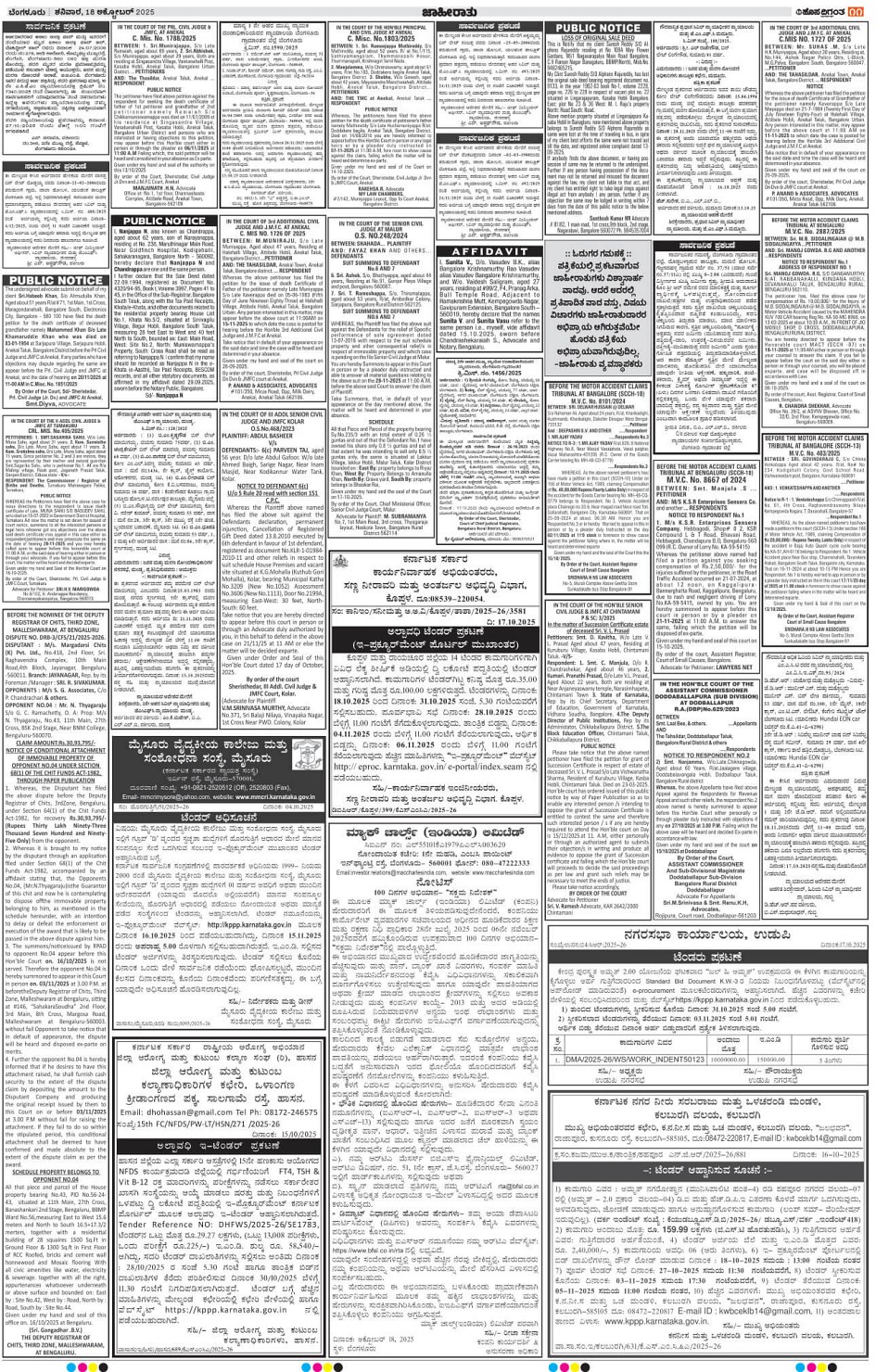 BENGALURU Page: 11 October 18, 2025 << First << 11 >> Last >> Page 1Page 2Page 3Page 4Page 5Page 6Page 7Page 8Page 9Page 10Page 11Page 12Page 13Page 14 × BENGALURU << First << 11 >> Last >> 1234567891011121314 SUB EDITIONS 11
