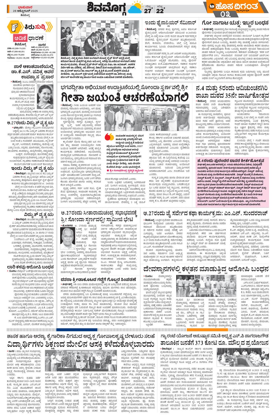 Shimoga Page: 4 October 26, 2025 << First << 4 >> Last >> Page 1Page 2Page 3Page 4 × Shimoga << First << 4 >> Last >> CkmCtdDvgSmg SUB EDITIONS Smg