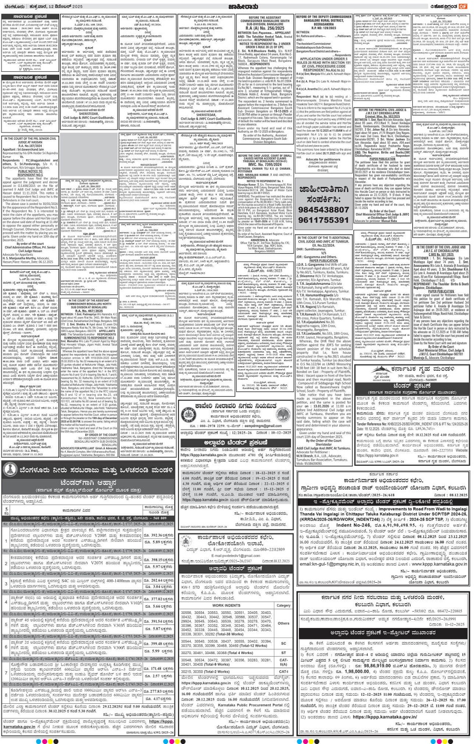 BENGALURU Page: 9 December 12, 2025 << First << 9 >> Last >> Page 1Page 2Page 3Page 4Page 5Page 6Page 7Page 8Page 9Page 10Page 11Page 12Page 13Page 14 × BENGALURU << First << 9 >> Last >> 1234567891011121314 SUB EDITIONS 9