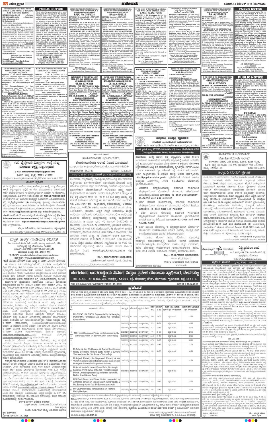 BENGALURU Page: 4 December 13, 2025 << First << 4 >> Last >> Page 1Page 2Page 3Page 4Page 5Page 6Page 7Page 8Page 9Page 10Page 11Page 12Page 13Page 14 × BENGALURU << First << 4 >> Last >> 1234567891011121314 SUB EDITIONS 4