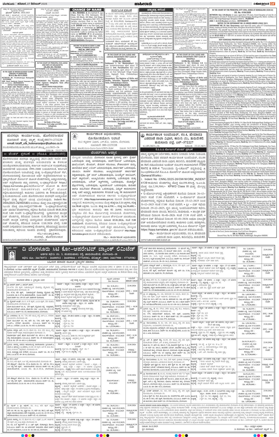 BENGALURU Page: 9 December 27, 2025 << First << 9 >> Last >> Page 1Page 2Page 3Page 4Page 5Page 6Page 7Page 8Page 9Page 10Page 11Page 12Page 13Page 14 × BENGALURU << First << 9 >> Last >> 1234567891011121314 SUB EDITIONS 9