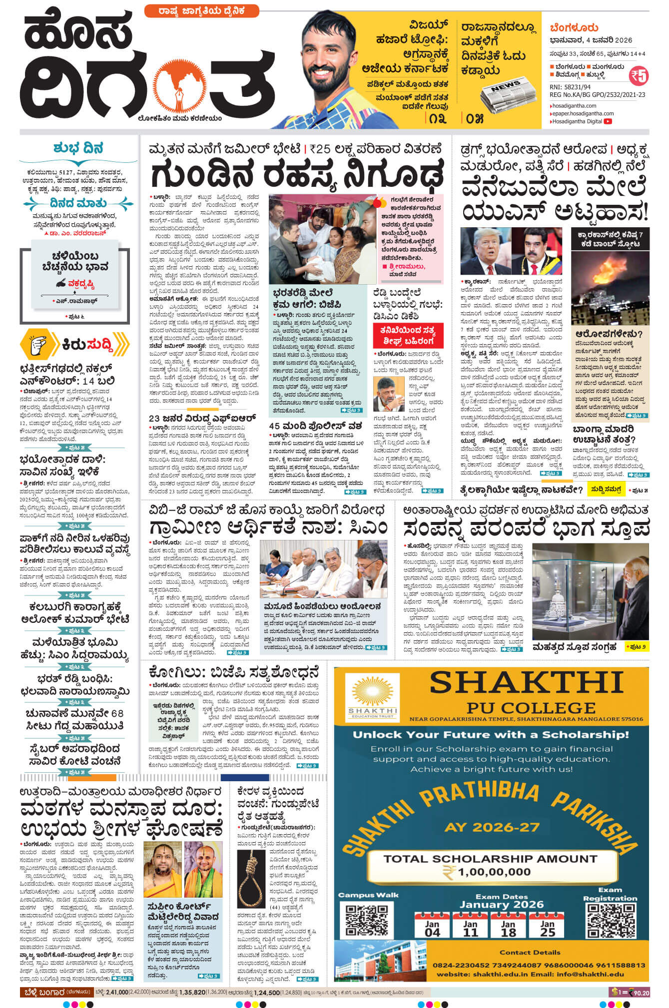 BENGALURU January 04, 2026 << First << 1 >> Last >> Page 1Page 2Page 3Page 4Page 5Page 6Page 7Page 8Page 9Page 10Page 11Page 12Page 13Page 14 × BENGALURU << First << 1 >> Last >> 1234567891011121314 SUB EDITIONS 1