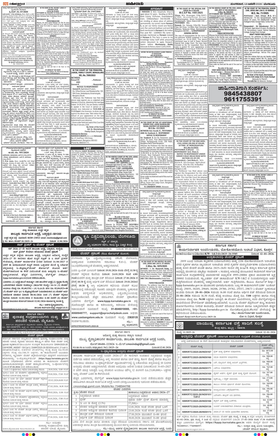 BENGALURU Page: 4 January 13, 2026 << First << 4 >> Last >> Page 1Page 2Page 3Page 4Page 5Page 6Page 7Page 8Page 9Page 10Page 11Page 12Page 13Page 14 × BENGALURU << First << 4 >> Last >> 1234567891011121314 SUB EDITIONS 4