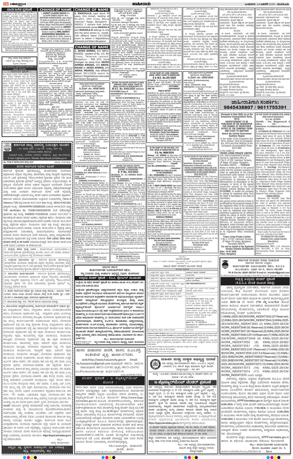 BENGALURU Page: 4 January 14, 2026 << First << 4 >> Last >> Page 1Page 2Page 3Page 4Page 5Page 6Page 7Page 8Page 9Page 10Page 11Page 12Page 13Page 14 × BENGALURU << First << 4 >> Last >> 1234567891011121314 SUB EDITIONS 4
