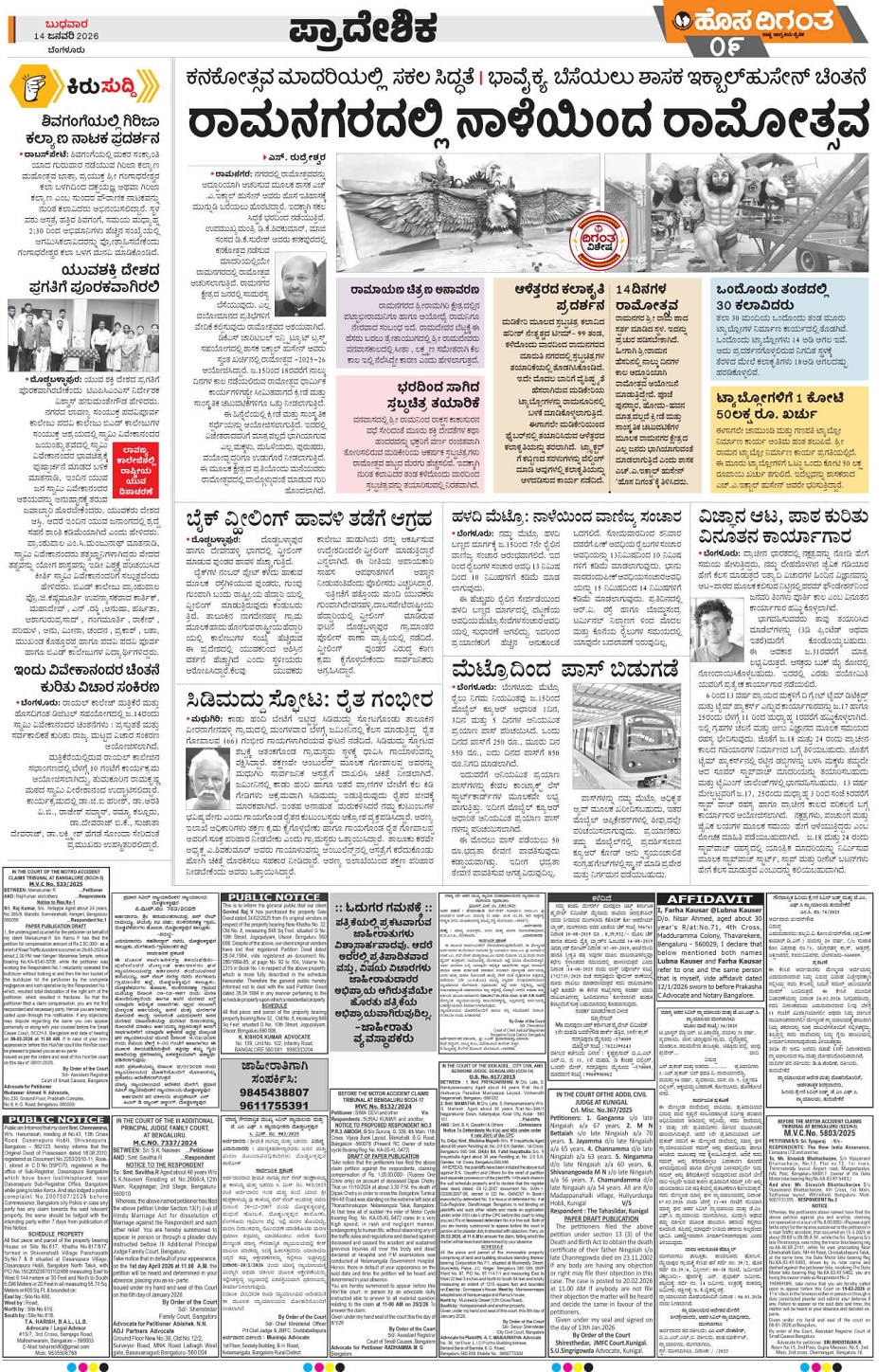 BENGALURU Page: 9 January 14, 2026 << First << 9 >> Last >> Page 1Page 2Page 3Page 4Page 5Page 6Page 7Page 8Page 9Page 10Page 11Page 12Page 13Page 14 × BENGALURU << First << 9 >> Last >> 1234567891011121314 SUB EDITIONS 9
