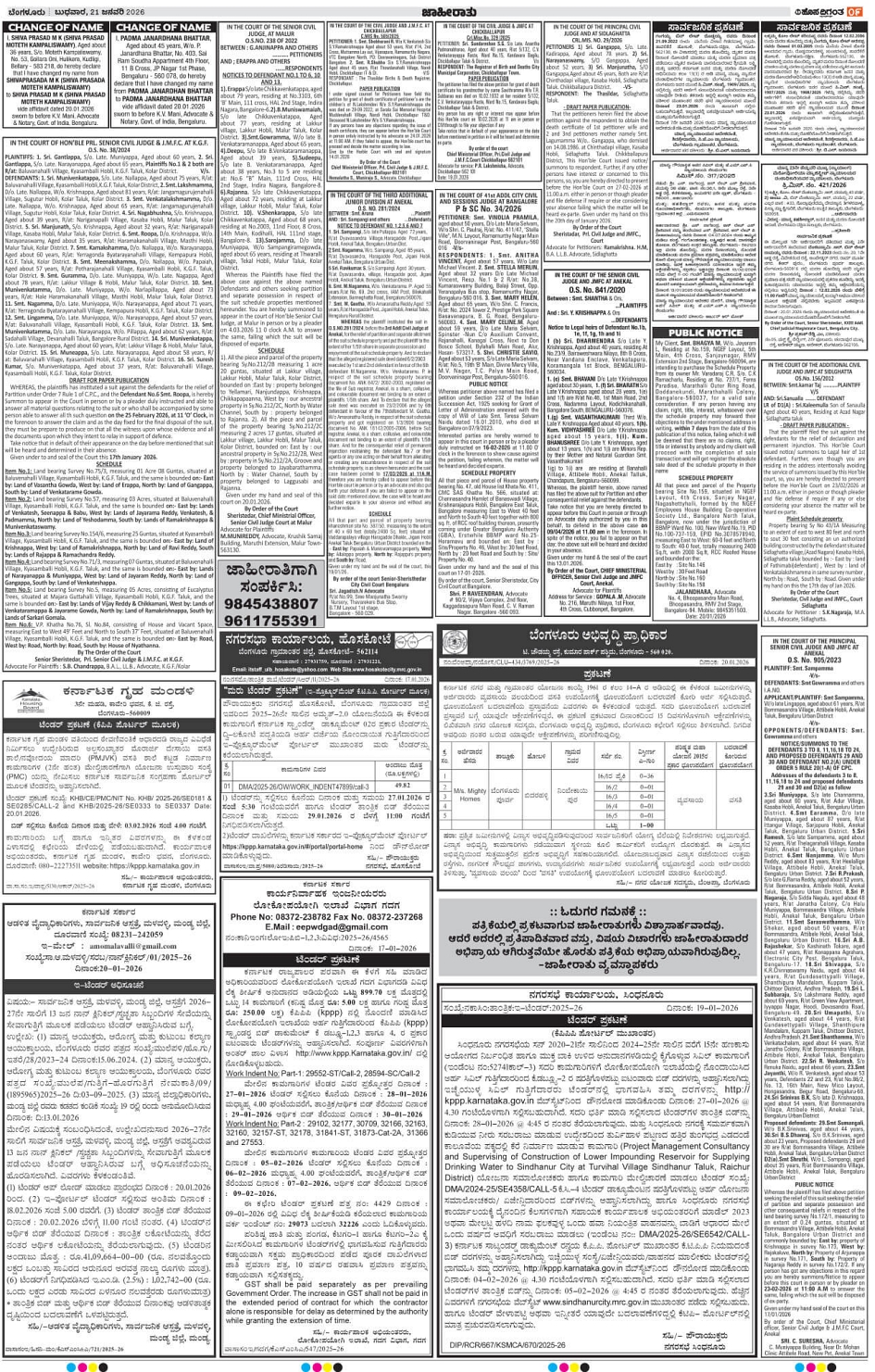BENGALURU Page: 9 January 21, 2026 << First << 9 >> Last >> Page 1Page 2Page 3Page 4Page 5Page 6Page 7Page 8Page 9Page 10Page 11Page 12Page 13Page 14 × BENGALURU << First << 9 >> Last >> 1234567891011121314 SUB EDITIONS 9
