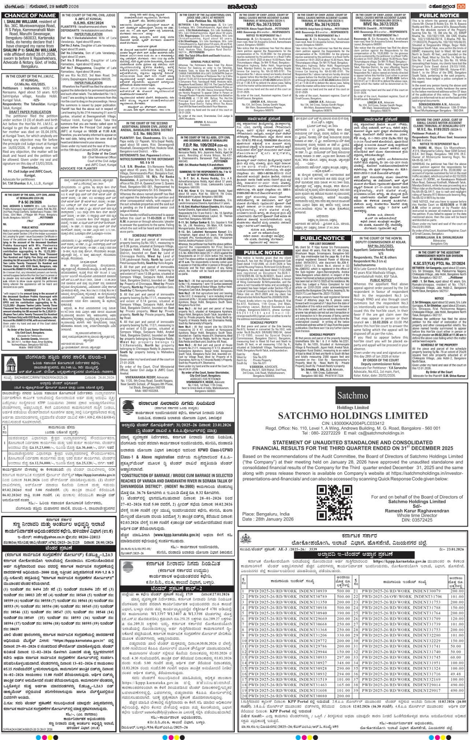 BENGALURU Page: 11 January 29, 2026 << First << 11 >> Last >> Page 1Page 2Page 3Page 4Page 5Page 6Page 7Page 8Page 9Page 10Page 11Page 12Page 13Page 14Page 15Page 16 × BENGALURU << First << 11 >> Last >> 12345678910111213141516 SUB EDITIONS 11