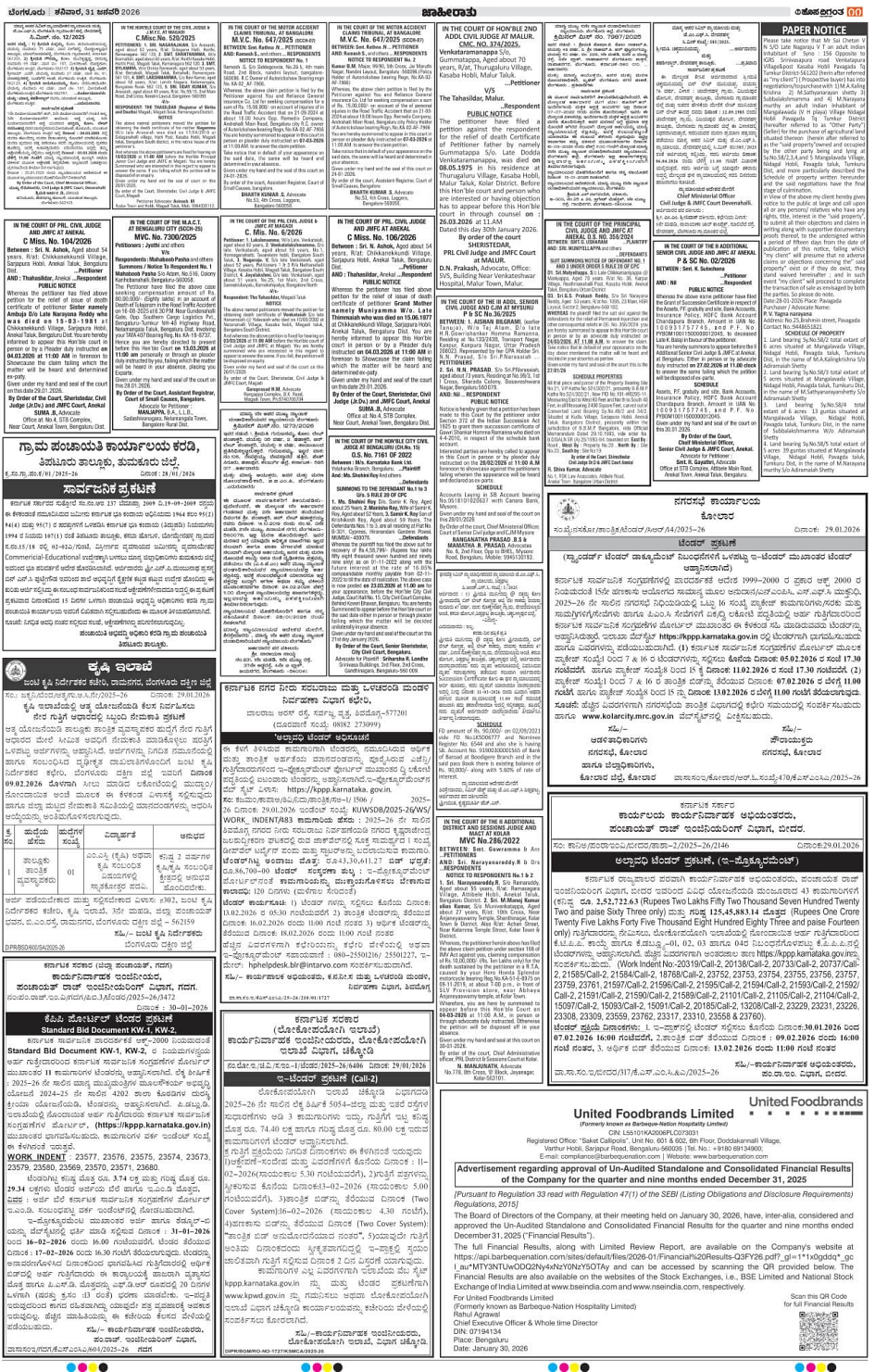 BENGALURU Page: 11 January 31, 2026 << First << 11 >> Last >> Page 1Page 2Page 3Page 4Page 5Page 6Page 7Page 8Page 9Page 10Page 11Page 12Page 13Page 14 × BENGALURU << First << 11 >> Last >> 1234567891011121314 SUB EDITIONS 11