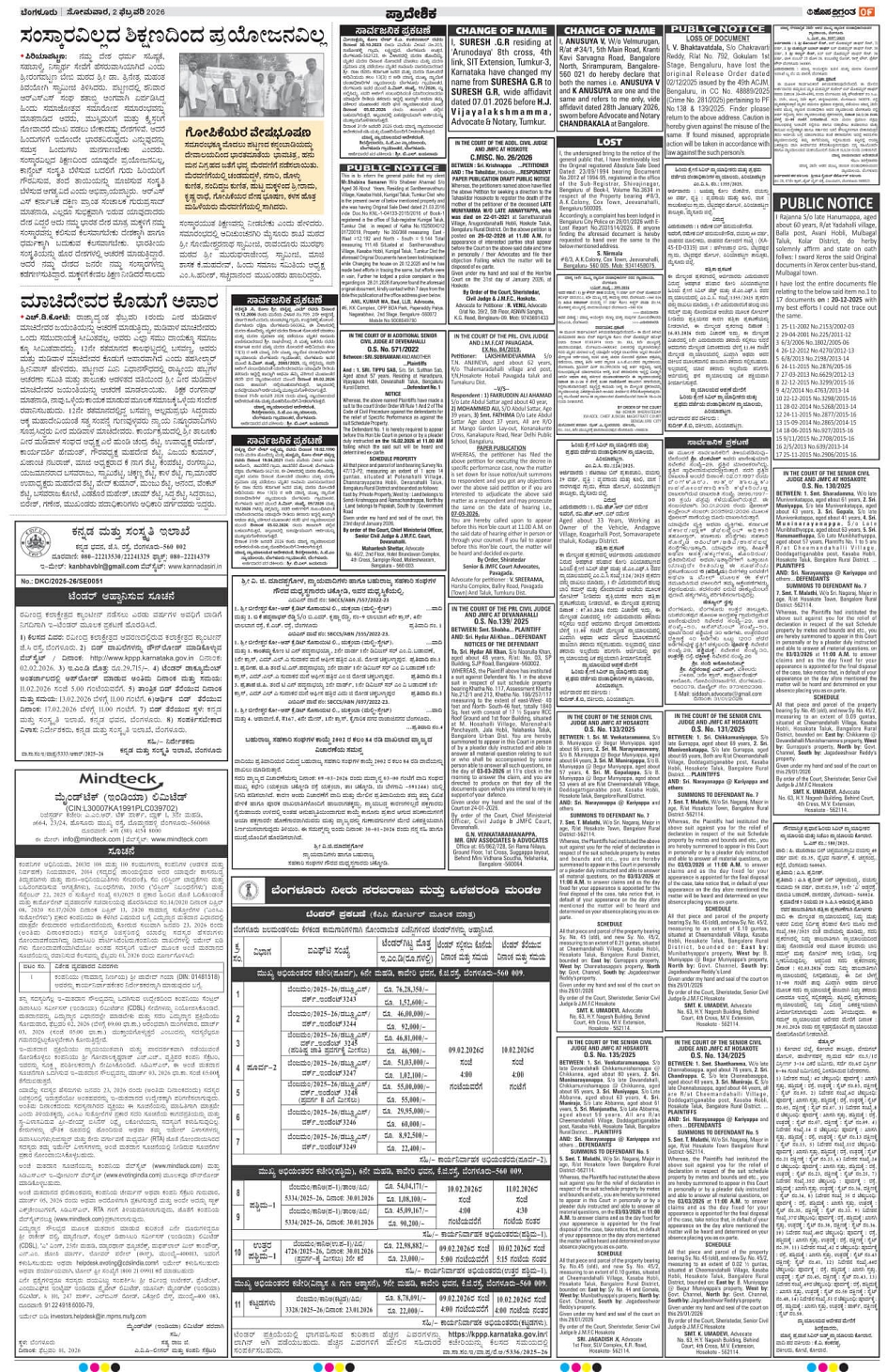 BENGALURU Page: 9 February 02, 2026 << First << 9 >> Last >> Page 1Page 2Page 3Page 4Page 5Page 6Page 7Page 8Page 9Page 10Page 11Page 12Page 13Page 14 × BENGALURU << First << 9 >> Last >> 1234567891011121314 SUB EDITIONS 9