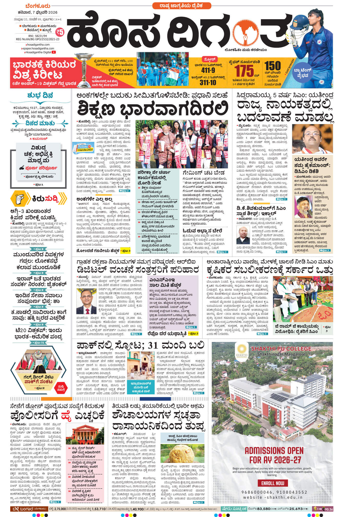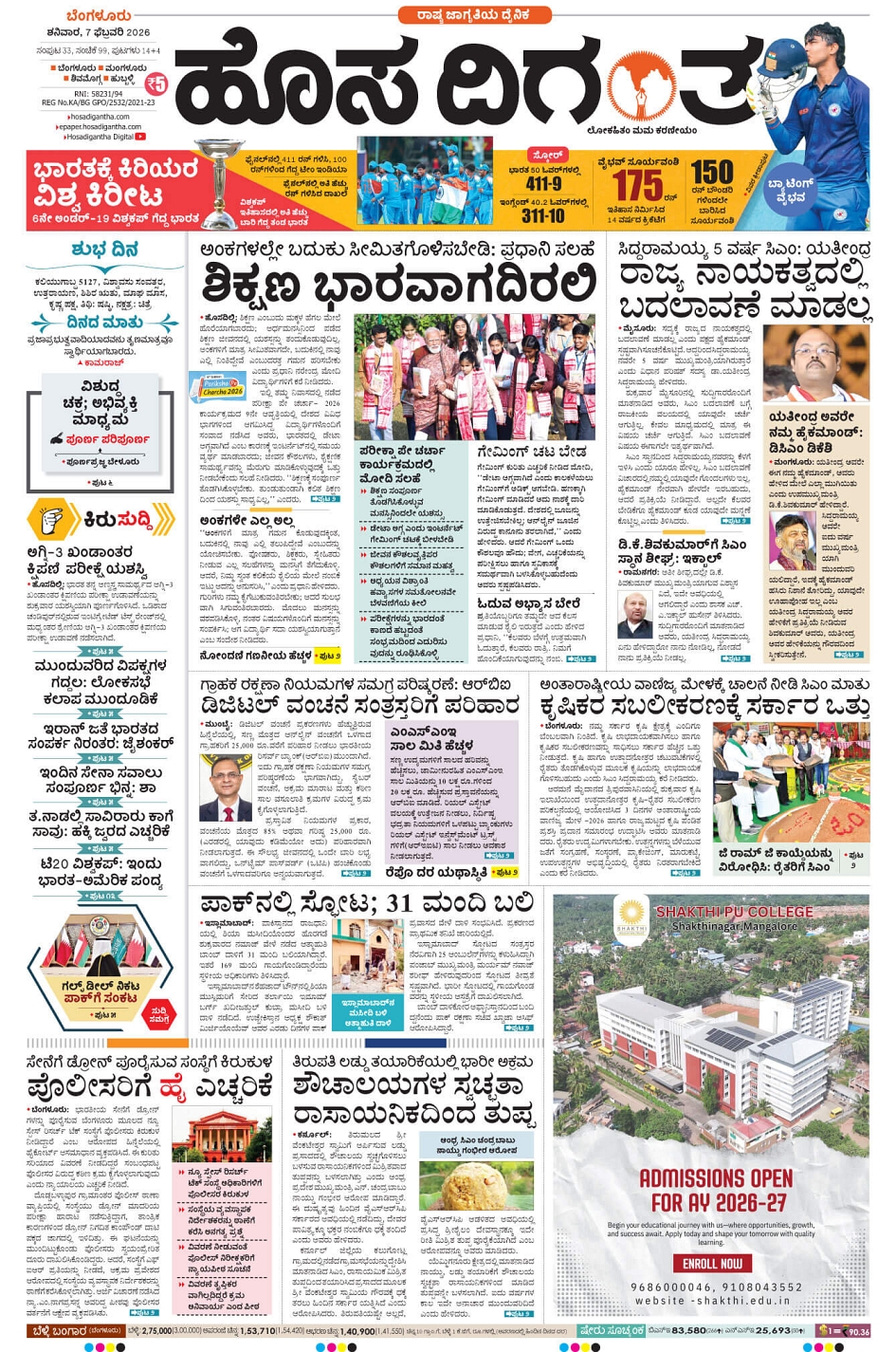 BENGALURU February 07, 2026 << First << 1 >> Last >> Page 1Page 2Page 3Page 4Page 5Page 6Page 7Page 8Page 9Page 10Page 11Page 12Page 13Page 14 × BENGALURU << First << 1 >> Last >> 1234567891011121314 SUB EDITIONS 1