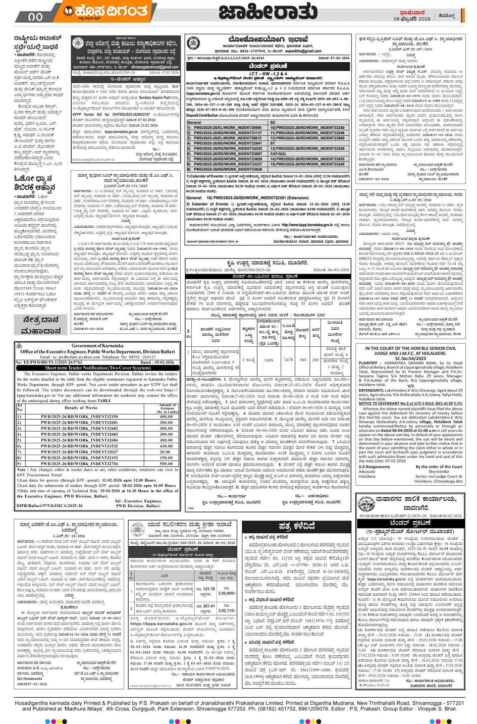 Shimoga Page: 8 February 08, 2026 << First << 8 >> Last >> Page 1Page 2Page 3Page 4Page 5Page 6Page 7Page 8Page 9Page 10 × Shimoga << First << 8 >> Last >> 1236789101112 SUB EDITIONS 10