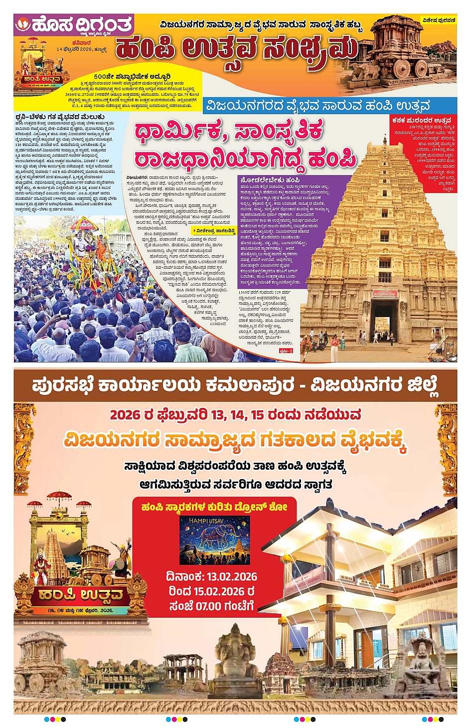 Hubli February 14, 2026 << First << 1 >> Last >> Page 1Page 2Page 3Page 4 × Hubli << First << 1 >> Last >> 1402 Hampi supp 011402 Hampi supp 021402 Hampi supp 031402 Hampi supp 04 SUPPLIMENTS 1402 Hampi supp 01