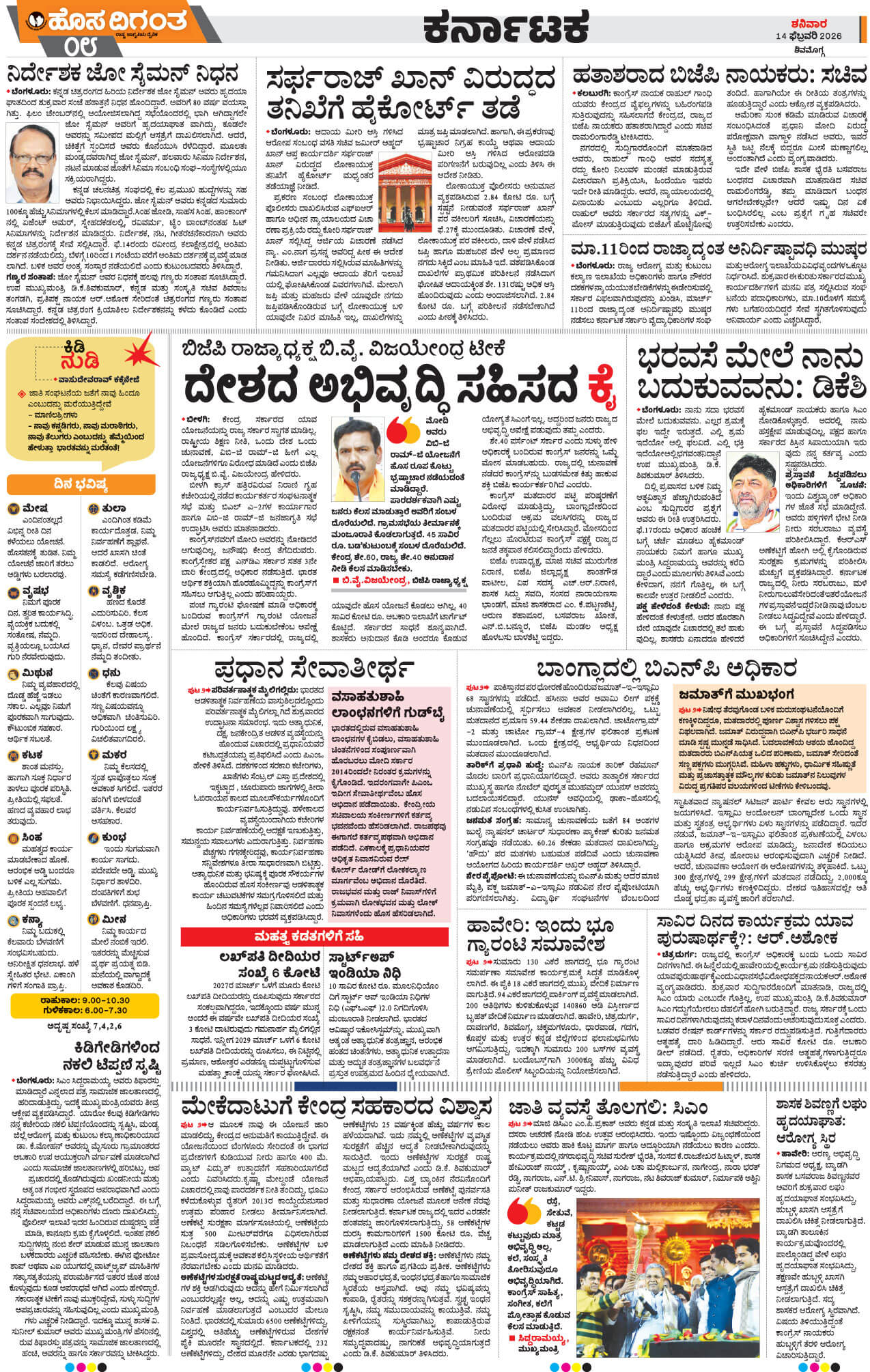 Shimoga Page: 6 February 14, 2026 << First << 6 >> Last >> Page 1Page 2Page 3Page 4Page 5Page 6Page 7Page 8Page 9Page 10 × Shimoga << First << 6 >> Last >> 123-16789101112 SUB EDITIONS 8
