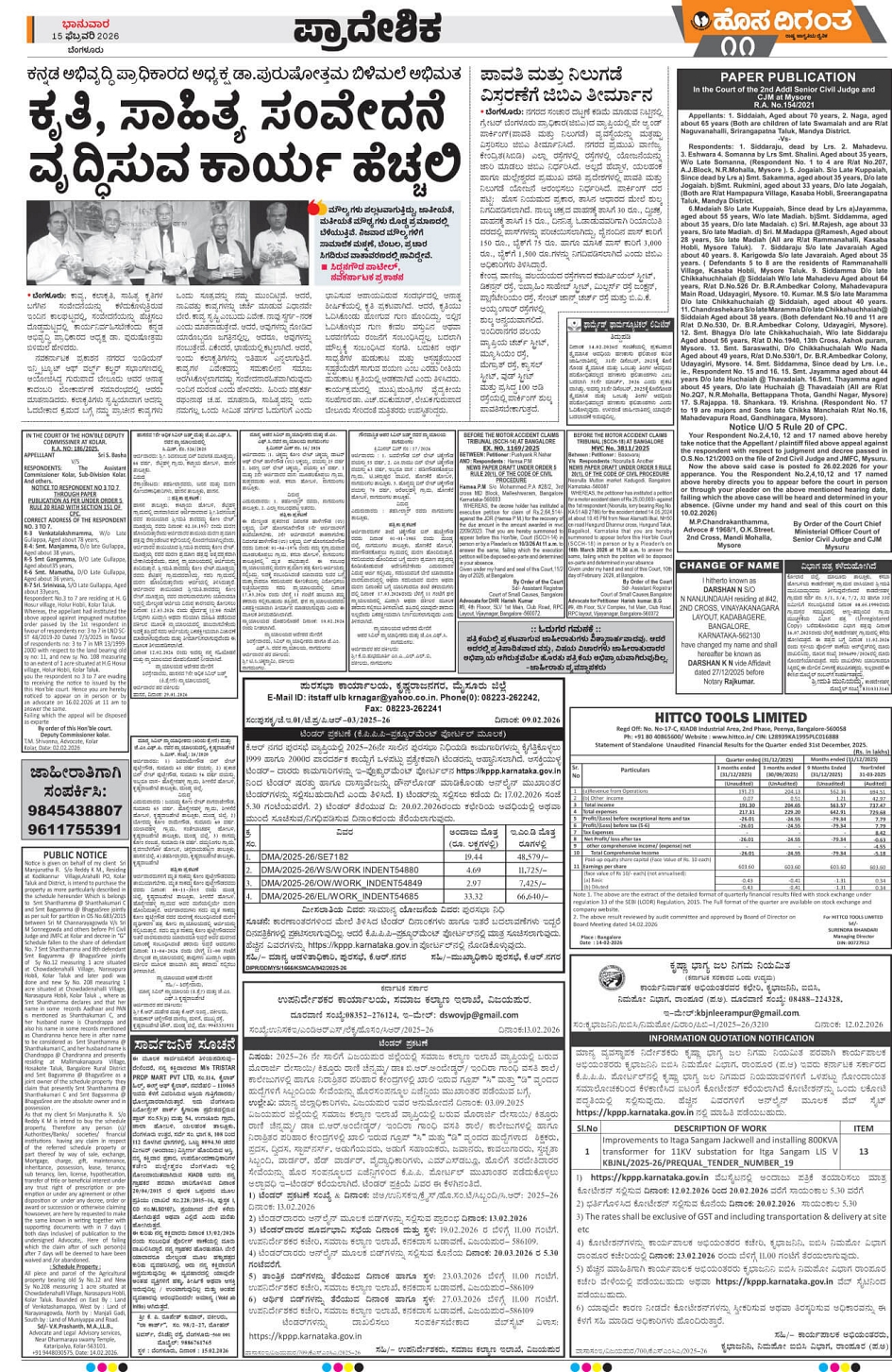 BENGALURU Page: 11 February 15, 2026 << First << 11 >> Last >> Page 1Page 2Page 3Page 4Page 5Page 6Page 7Page 8Page 9Page 10Page 11Page 12Page 13Page 14 × BENGALURU << First << 11 >> Last >> 1234567891011121314 SUB EDITIONS 11