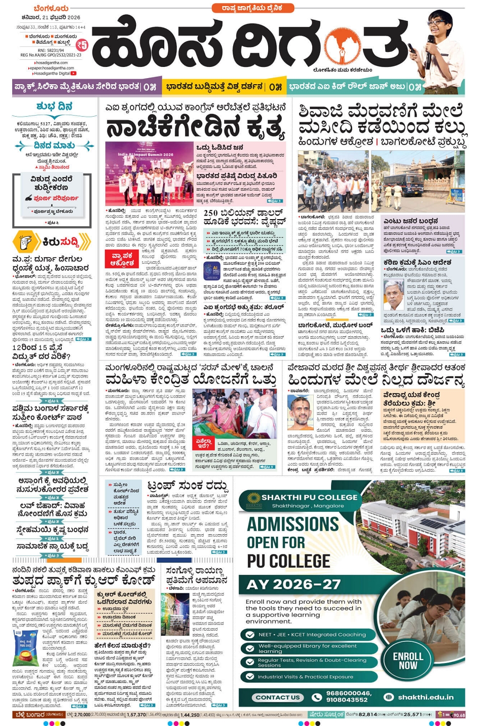 BENGALURU February 21, 2026 << First << 1 >> Last >> Page 1Page 2Page 3Page 4Page 5Page 6Page 7Page 8Page 9Page 10Page 11Page 12Page 13Page 14 × BENGALURU << First << 1 >> Last >> 1234567891011121314 SUB EDITIONS 1