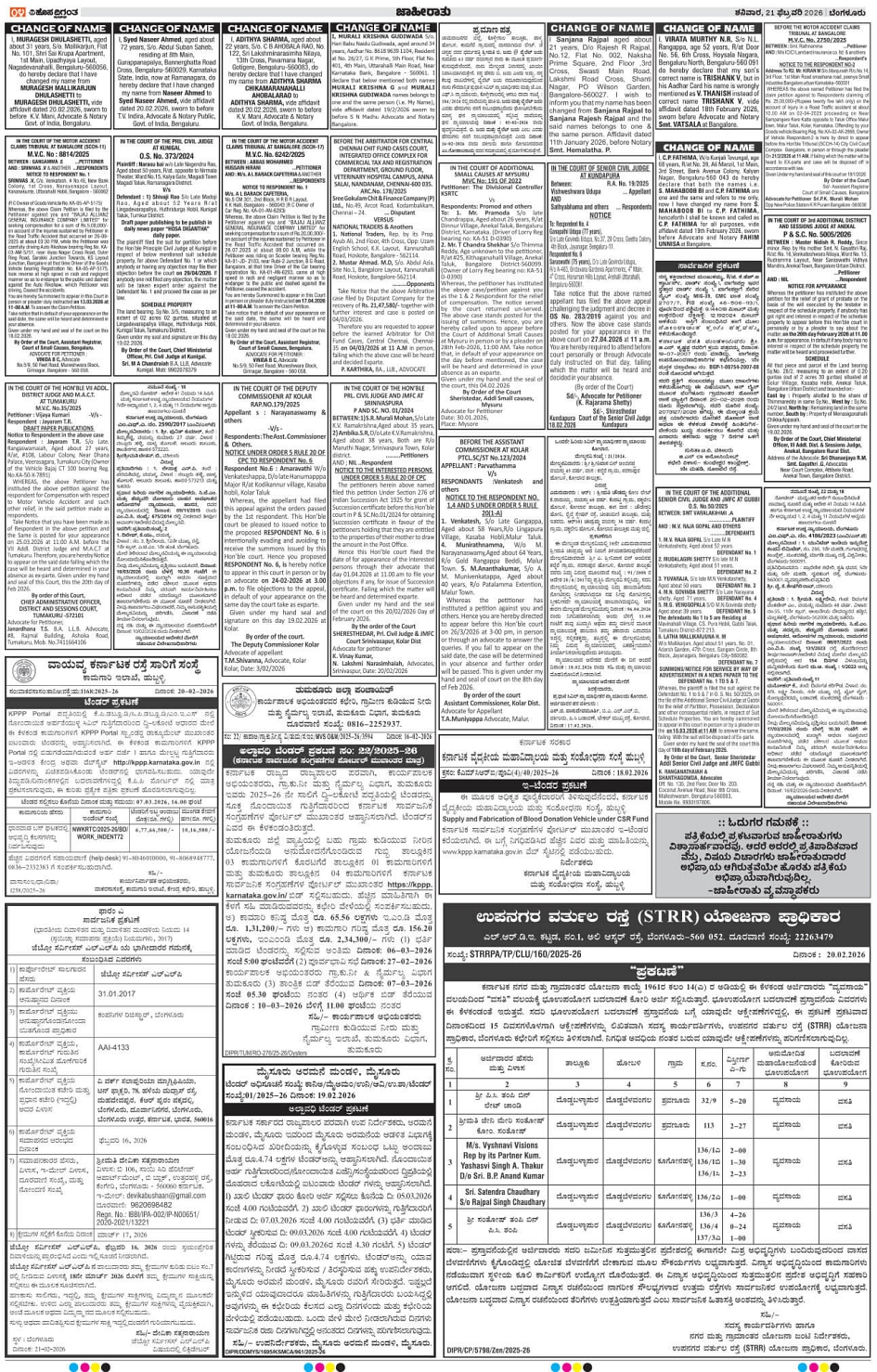 BENGALURU Page: 4 February 21, 2026 << First << 4 >> Last >> Page 1Page 2Page 3Page 4Page 5Page 6Page 7Page 8Page 9Page 10Page 11Page 12Page 13Page 14 × BENGALURU << First << 4 >> Last >> 1234567891011121314 SUB EDITIONS 4