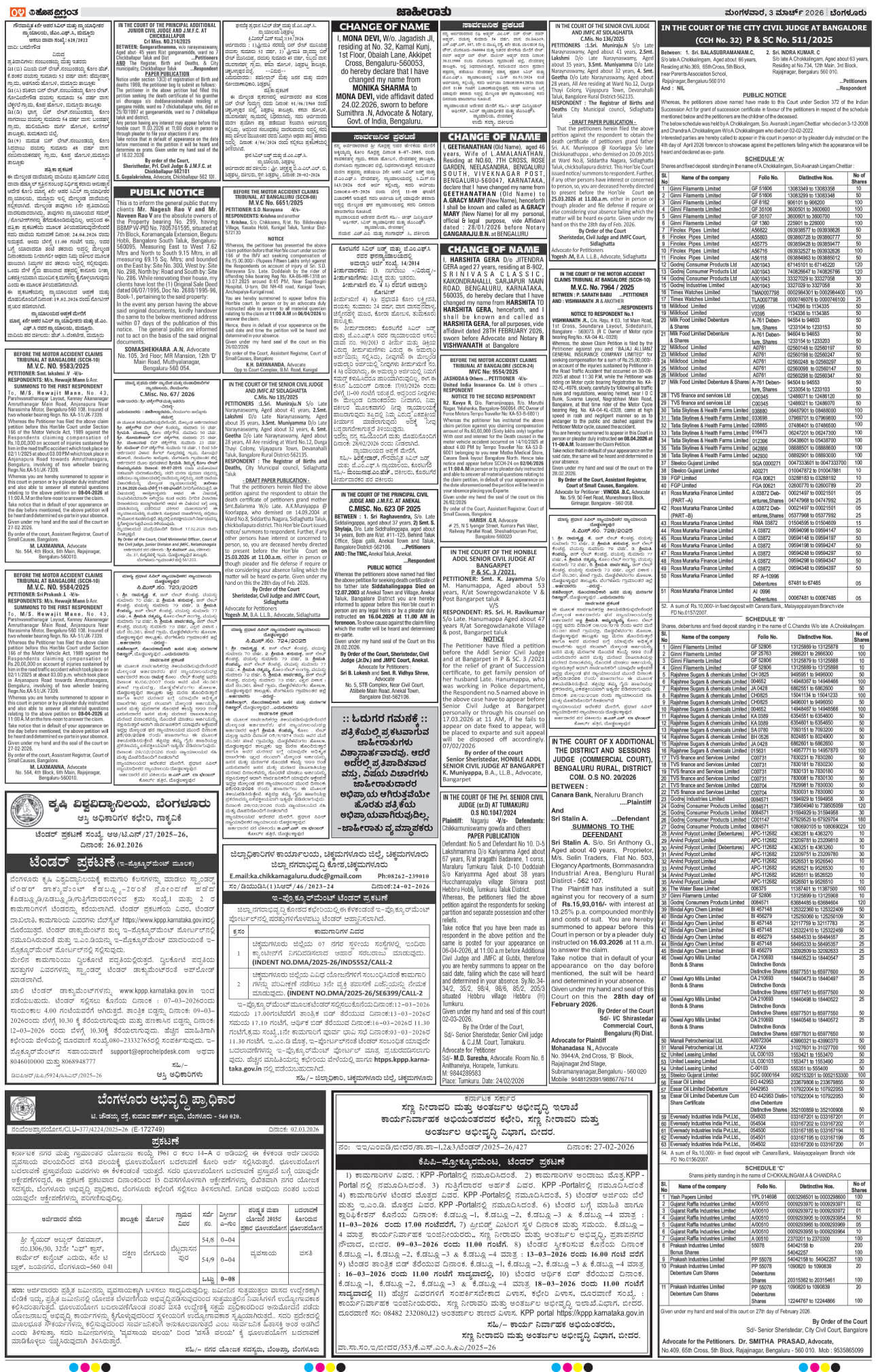 BENGALURU Page: 4 March 03, 2026 << First << 4 >> Last >> Page 1Page 2Page 3Page 4Page 5Page 6Page 7Page 8Page 9Page 10Page 11Page 12 × BENGALURU << First << 4 >> Last >> 123456789101112 SUB EDITIONS 4