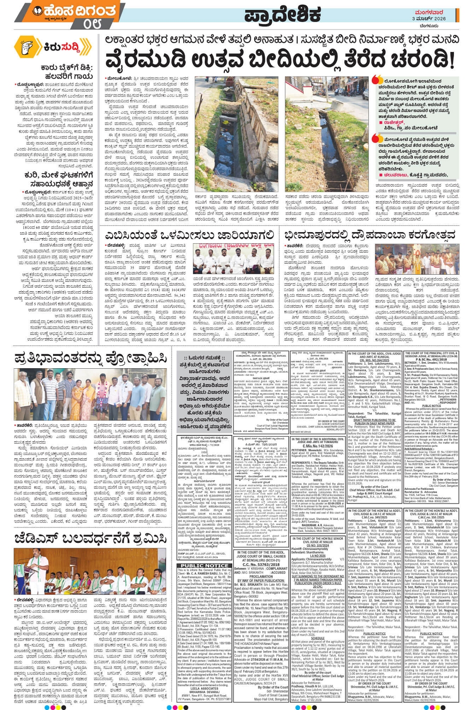 BENGALURU Page: 8 March 03, 2026 << First << 8 >> Last >> Page 1Page 2Page 3Page 4Page 5Page 6Page 7Page 8Page 9Page 10Page 11Page 12 × BENGALURU << First << 8 >> Last >> 123456789101112 SUB EDITIONS 8