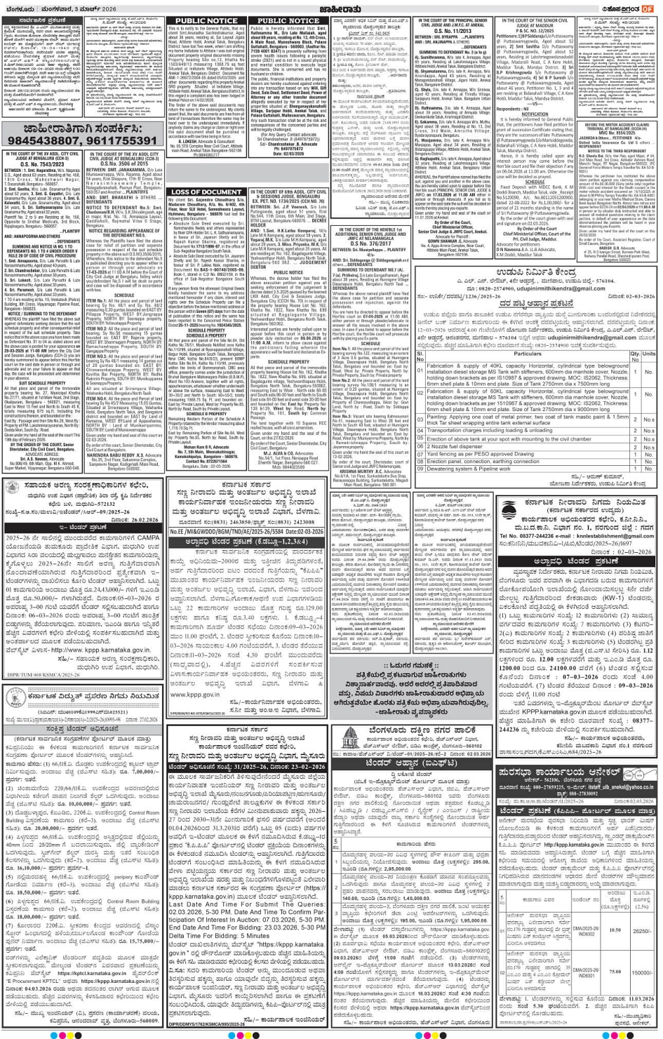 BENGALURU Page: 9 March 03, 2026 << First << 9 >> Last >> Page 1Page 2Page 3Page 4Page 5Page 6Page 7Page 8Page 9Page 10Page 11Page 12 × BENGALURU << First << 9 >> Last >> 123456789101112 SUB EDITIONS 9