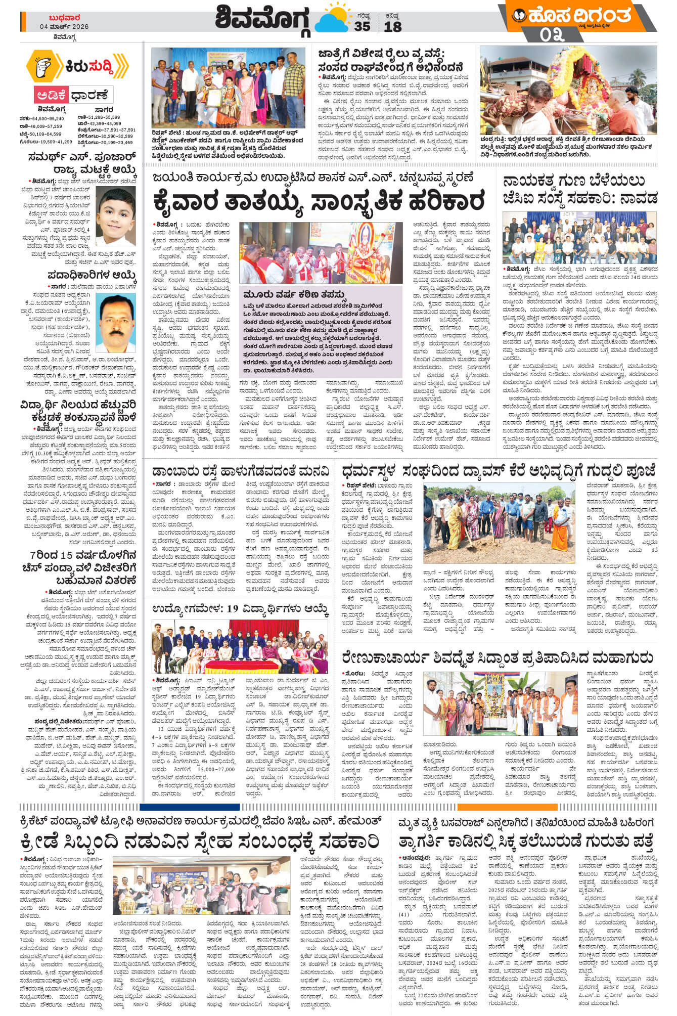Shimoga Page: 4 March 04, 2026 << First << 4 >> Last >> Page 1Page 2Page 3Page 4 × Shimoga << First << 4 >> Last >> CkmCtdDvgSmg-1 SUB EDITIONS Smg-1