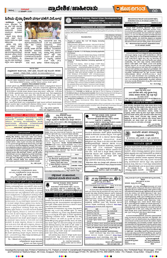 Shimoga Page: 7 March 12, 2026 << First << 7 >> Last >> Page 1Page 2Page 3Page 4Page 5Page 6Page 7Page 8 × Shimoga << First << 7 >> Last >> 16789101112 SUB EDITIONS 11