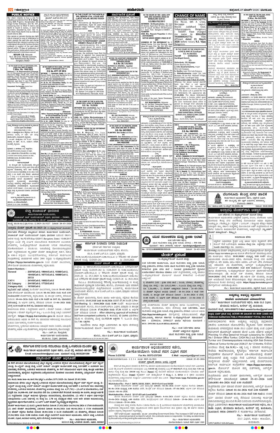BENGALURU Page: 4 March 27, 2026 << First << 4 >> Last >> Page 1Page 2Page 3Page 4Page 5Page 6Page 7Page 8Page 9Page 10Page 11Page 12Page 13Page 14 × BENGALURU << First << 4 >> Last >> 1234567891011121314 SUB EDITIONS 4