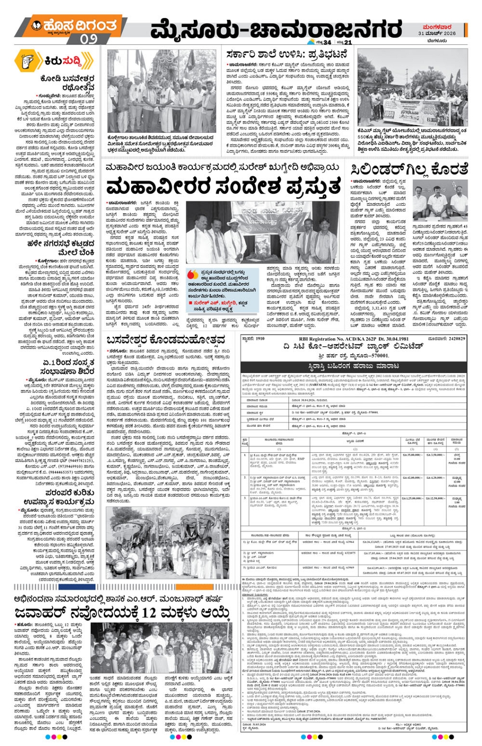 BENGALURU Page: 2 March 31, 2026 << First << 2 >> Last >> Page 1Page 2Page 3Page 4Page 5Page 6Page 7Page 8 × BENGALURU << First << 2 >> Last >> mys 1mys 2mys 3mys 4tmk 1tmk 2tmk 3tmk 4 SUB EDITIONS mys 2