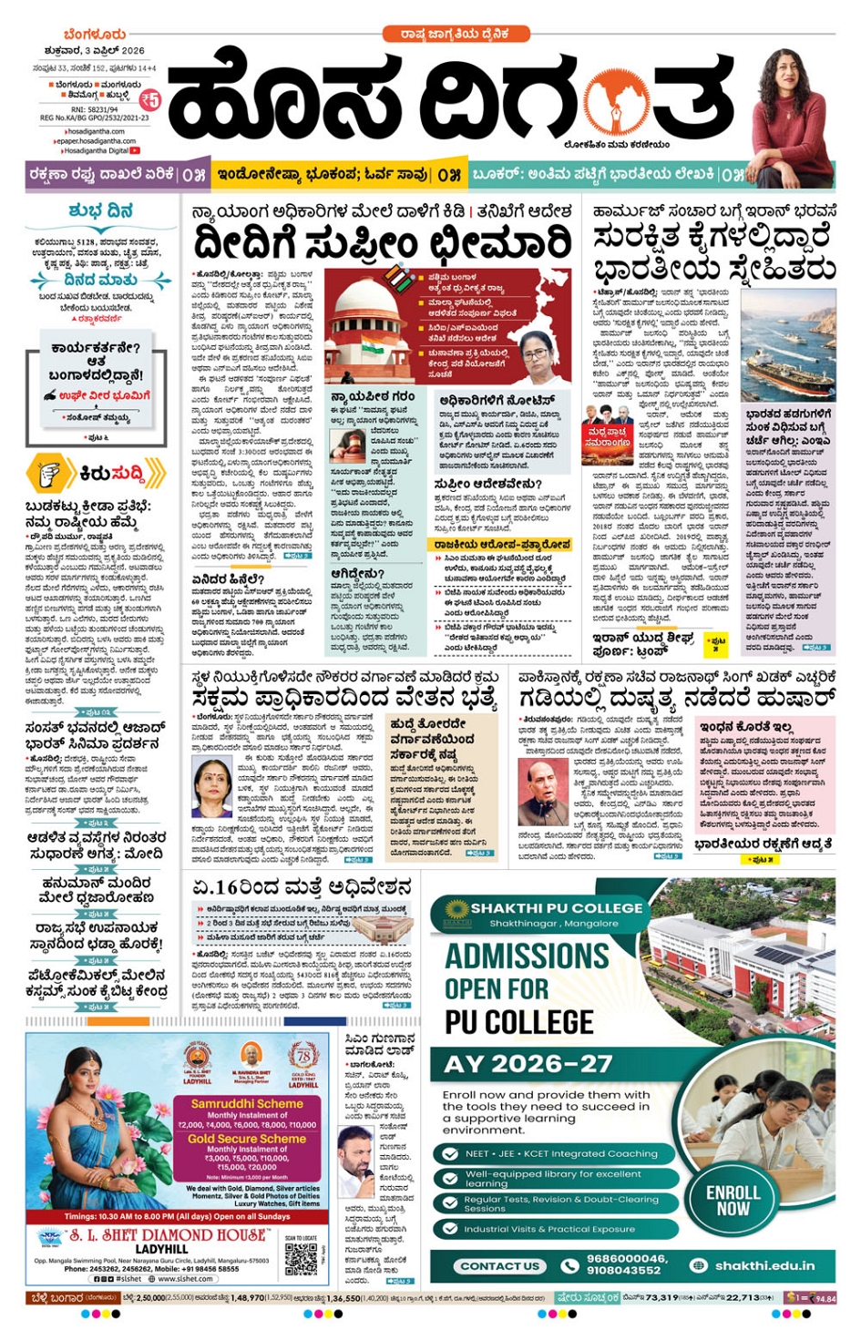 BENGALURU April 03, 2026 << First << 1 >> Last >> Page 1Page 2Page 3Page 4Page 5Page 6Page 7Page 8Page 9Page 10Page 11Page 12Page 13Page 14 × BENGALURU << First << 1 >> Last >> 1234567891011121314 SUB EDITIONS 1