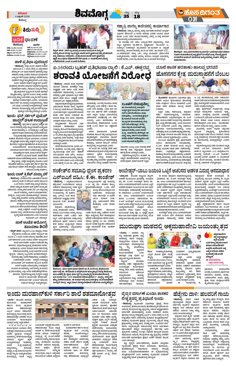 Shimoga Page: 4 April 04, 2026 << First << 4 >> Last >> Page 1Page 2Page 3Page 4 × Shimoga << First << 4 >> Last >> CkmCtdDvgSmg SUB EDITIONS Smg