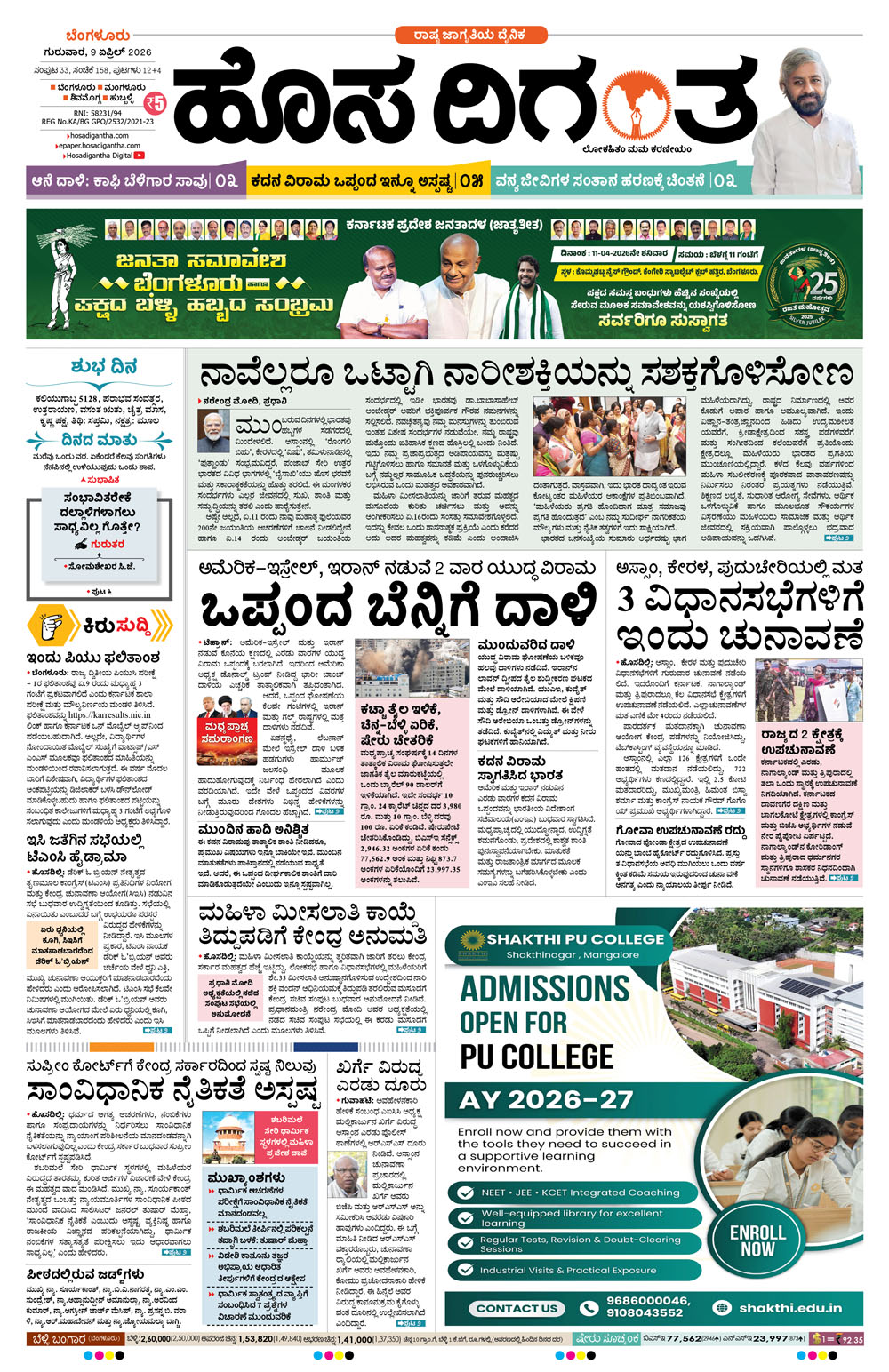 BENGALURU April 09, 2026 << First << 1 >> Last >> Page 1Page 2Page 3Page 4Page 5Page 6Page 7Page 8Page 9Page 10Page 11Page 12 × BENGALURU << First << 1 >> Last >> 123456789101112 SUB EDITIONS 1