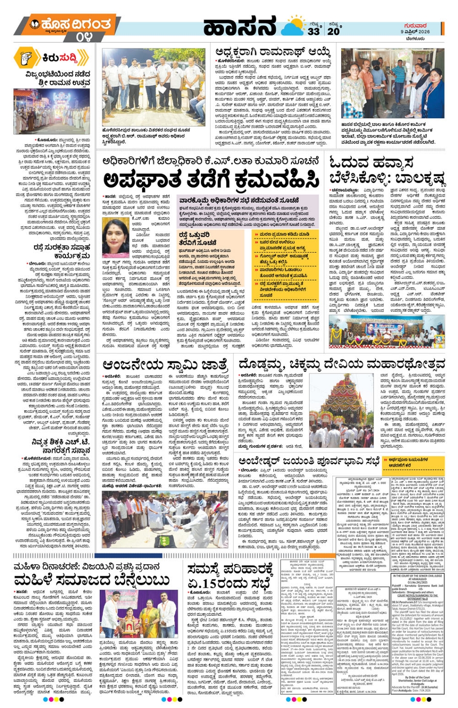 BENGALURU Page: 4 April 09, 2026 << First << 4 >> Last >> Page 1Page 2Page 3Page 4Page 5Page 6Page 7Page 8 × BENGALURU << First << 4 >> Last >> mys 1mys 2mys 3mys 4tmk 1tmk 2tmk 3tmk 4 SUB EDITIONS mys 4