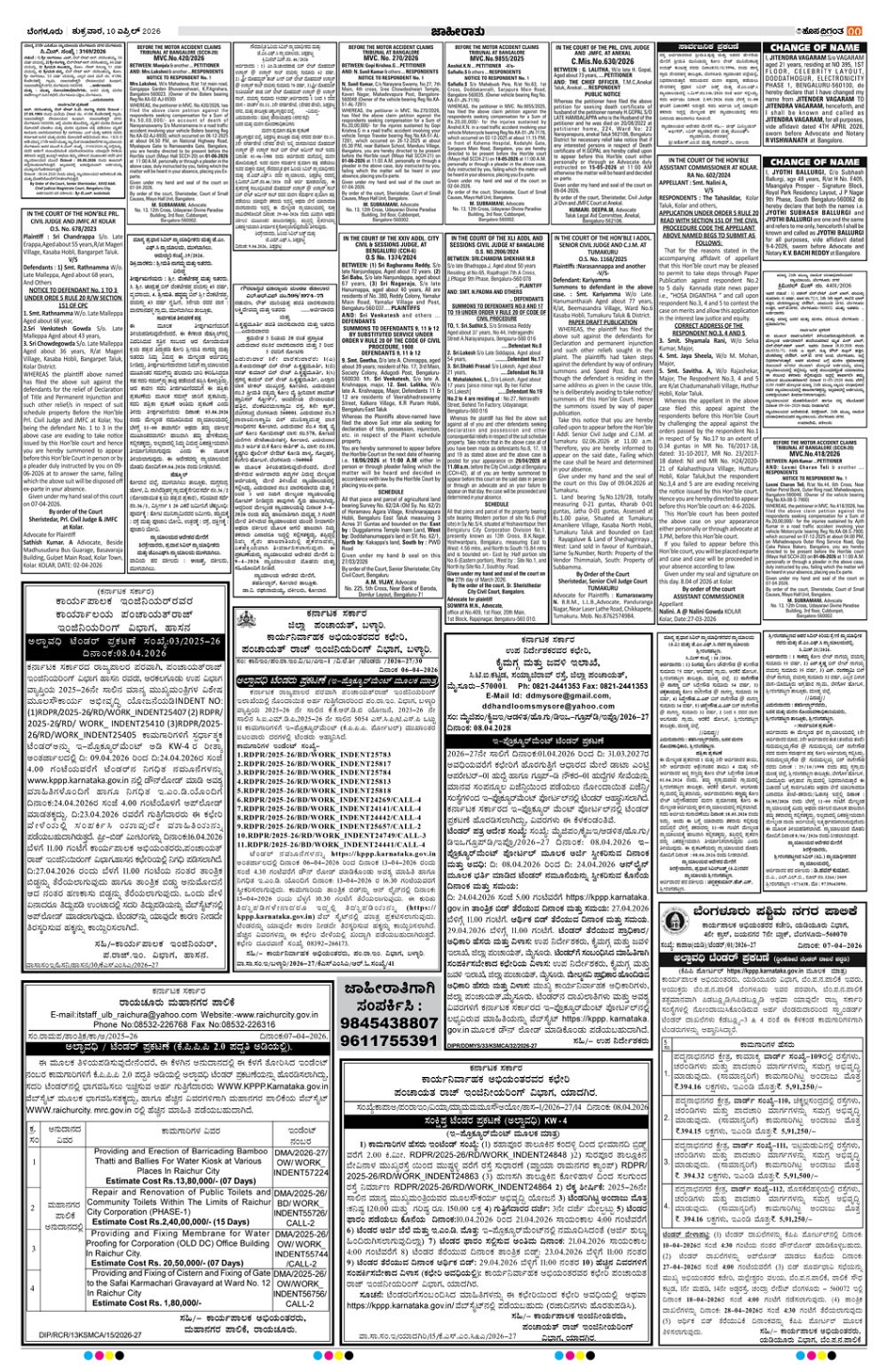 BENGALURU Page: 11 April 10, 2026 << First << 11 >> Last >> Page 1Page 2Page 3Page 4Page 5Page 6Page 7Page 8Page 9Page 10Page 11Page 12Page 13Page 14 × BENGALURU << First << 11 >> Last >> BLR124567891011121314 SUB EDITIONS 11