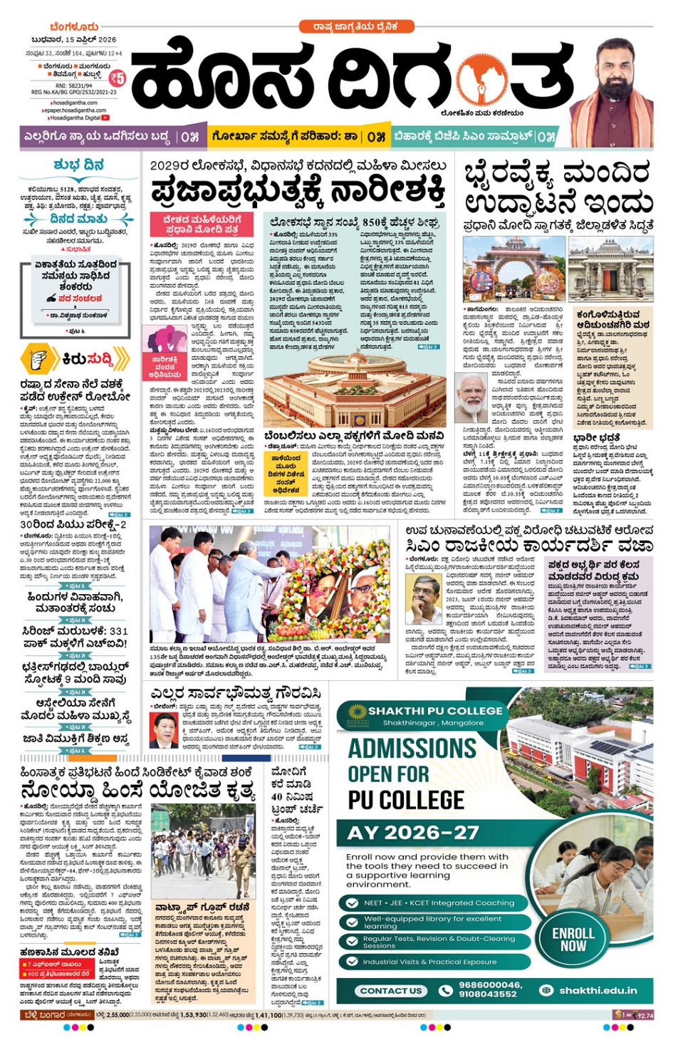BENGALURU April 15, 2026 << First << 1 >> Last >> Page 1Page 2Page 3Page 4Page 5Page 6Page 7Page 8Page 9Page 10Page 11Page 12 × BENGALURU << First << 1 >> Last >> 123456789101112 SUB EDITIONS 1
