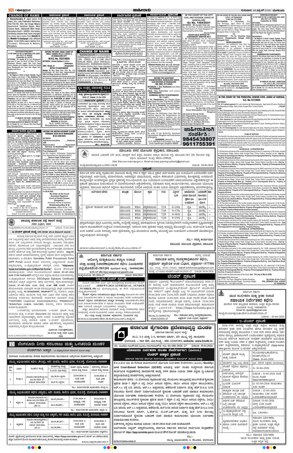 BENGALURU Page: 4 April 16, 2026 << First << 4 >> Last >> Page 1Page 2Page 3Page 4Page 5Page 6Page 7Page 8Page 9Page 10Page 11Page 12 × BENGALURU << First << 4 >> Last >> 123456789101112 SUB EDITIONS 4