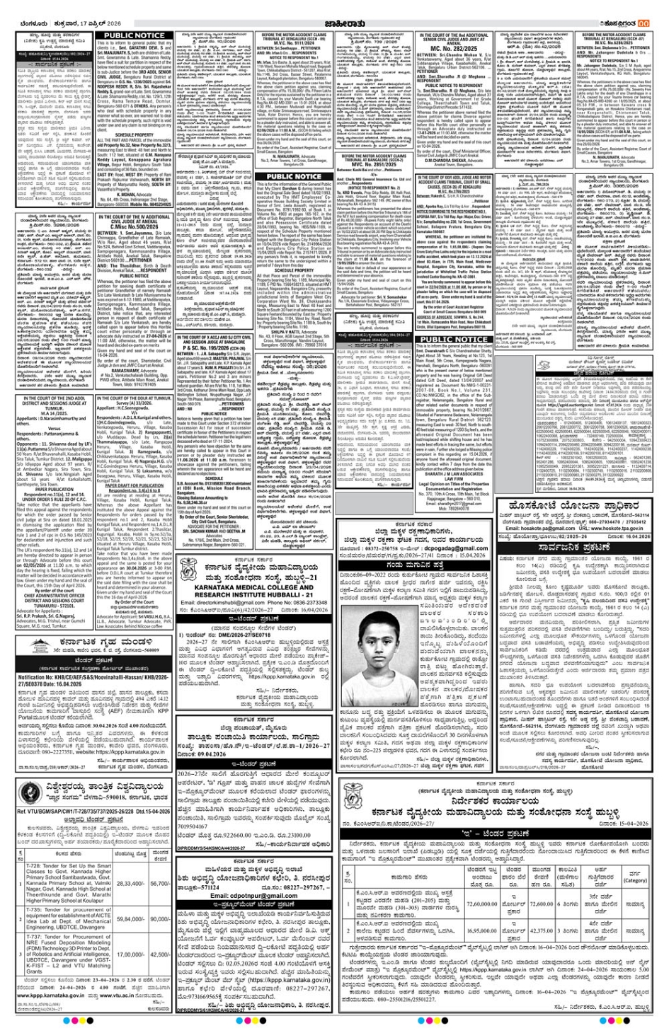 BENGALURU Page: 11 April 17, 2026 << First << 11 >> Last >> Page 1Page 2Page 3Page 4Page 5Page 6Page 7Page 8Page 9Page 10Page 11Page 12Page 13Page 14 × BENGALURU << First << 11 >> Last >> 1234567891011121314 SUB EDITIONS 11