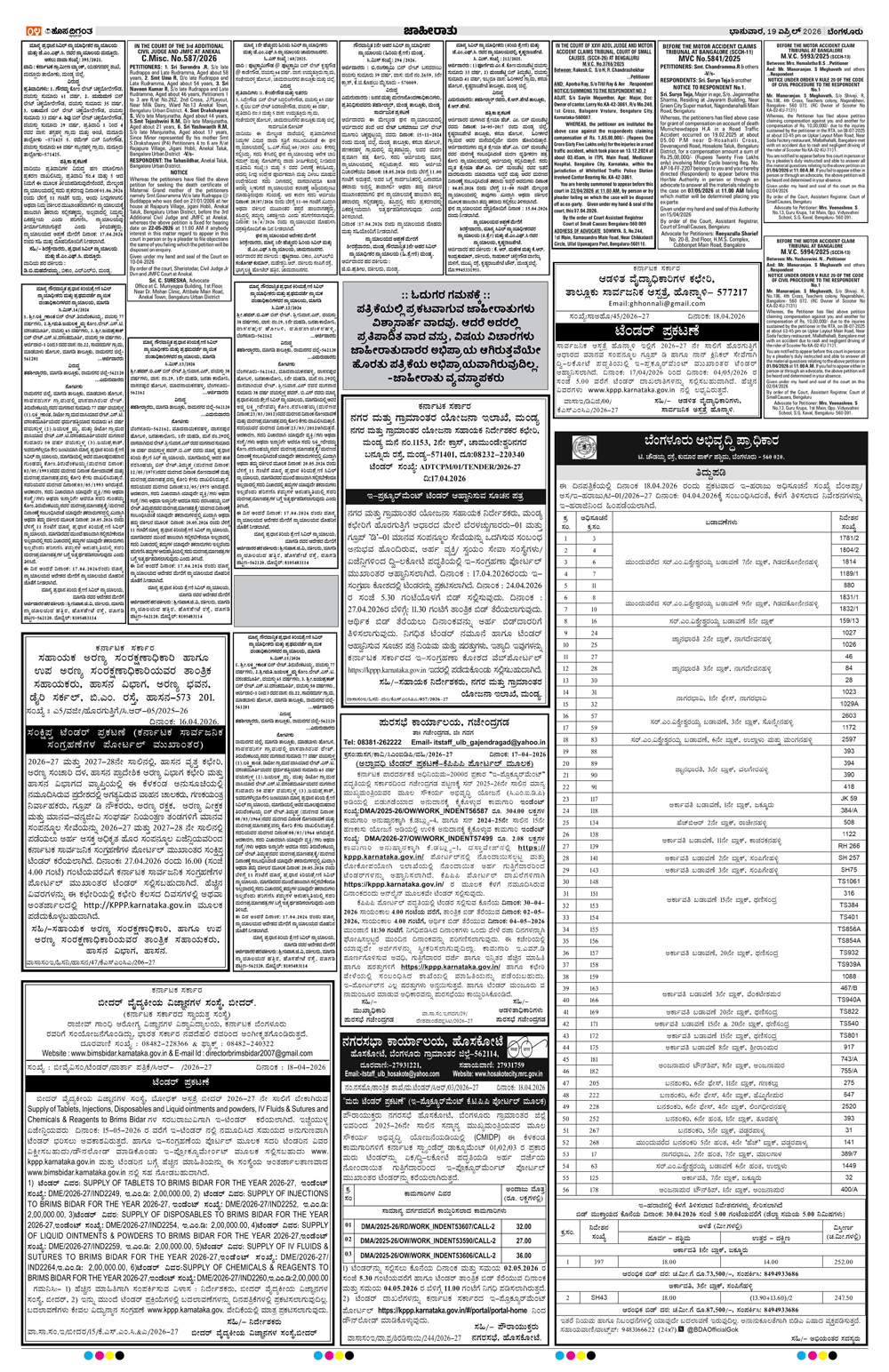 BENGALURU Page: 4 April 19, 2026 << First << 4 >> Last >> Page 1Page 2Page 3Page 4Page 5Page 6Page 7Page 8Page 9Page 10Page 11Page 12 × BENGALURU << First << 4 >> Last >> 123456789101112 SUB EDITIONS 4