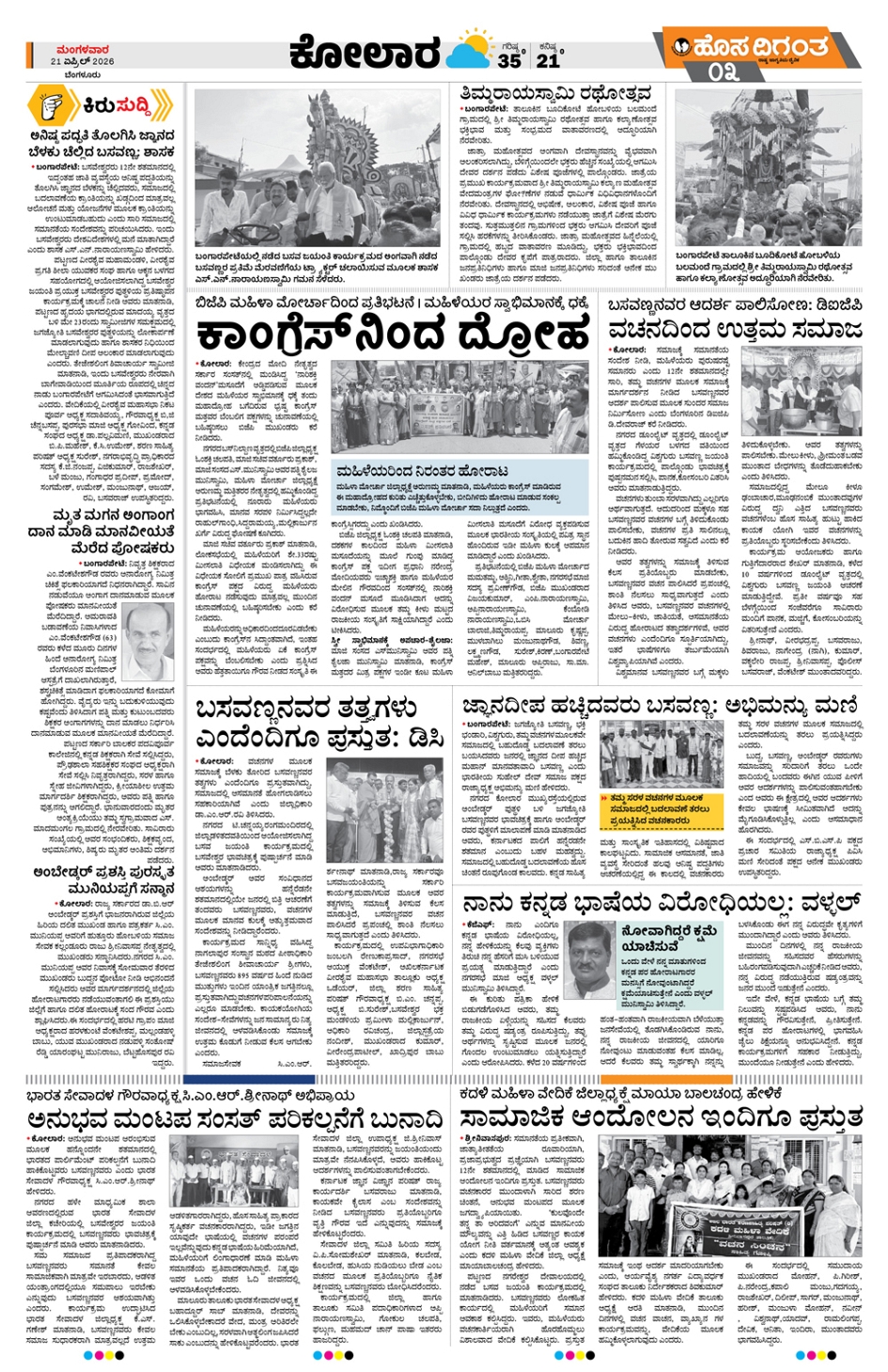 BENGALURU Page: 7 April 21, 2026 << First << 7 >> Last >> Page 1Page 2Page 3Page 4Page 5Page 6Page 7Page 8 × BENGALURU << First << 7 >> Last >> Mys 1Mys 2Mys 3Mys 4TMK 1TMK 2TMK 3TMK 4 SUB EDITIONS TMK 3