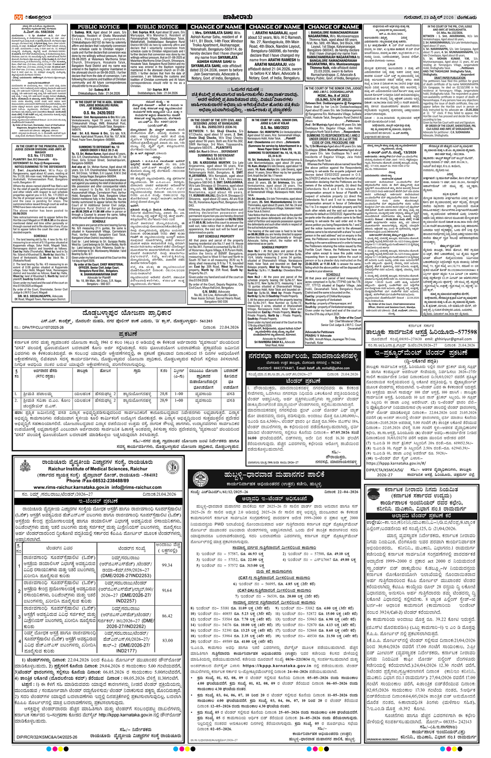 BENGALURU Page: 4 April 23, 2026 << First << 4 >> Last >> Page 1Page 2Page 3Page 4Page 5Page 6Page 7Page 8Page 9Page 10Page 11Page 12 × BENGALURU << First << 4 >> Last >> 123456789101112 SUB EDITIONS 4