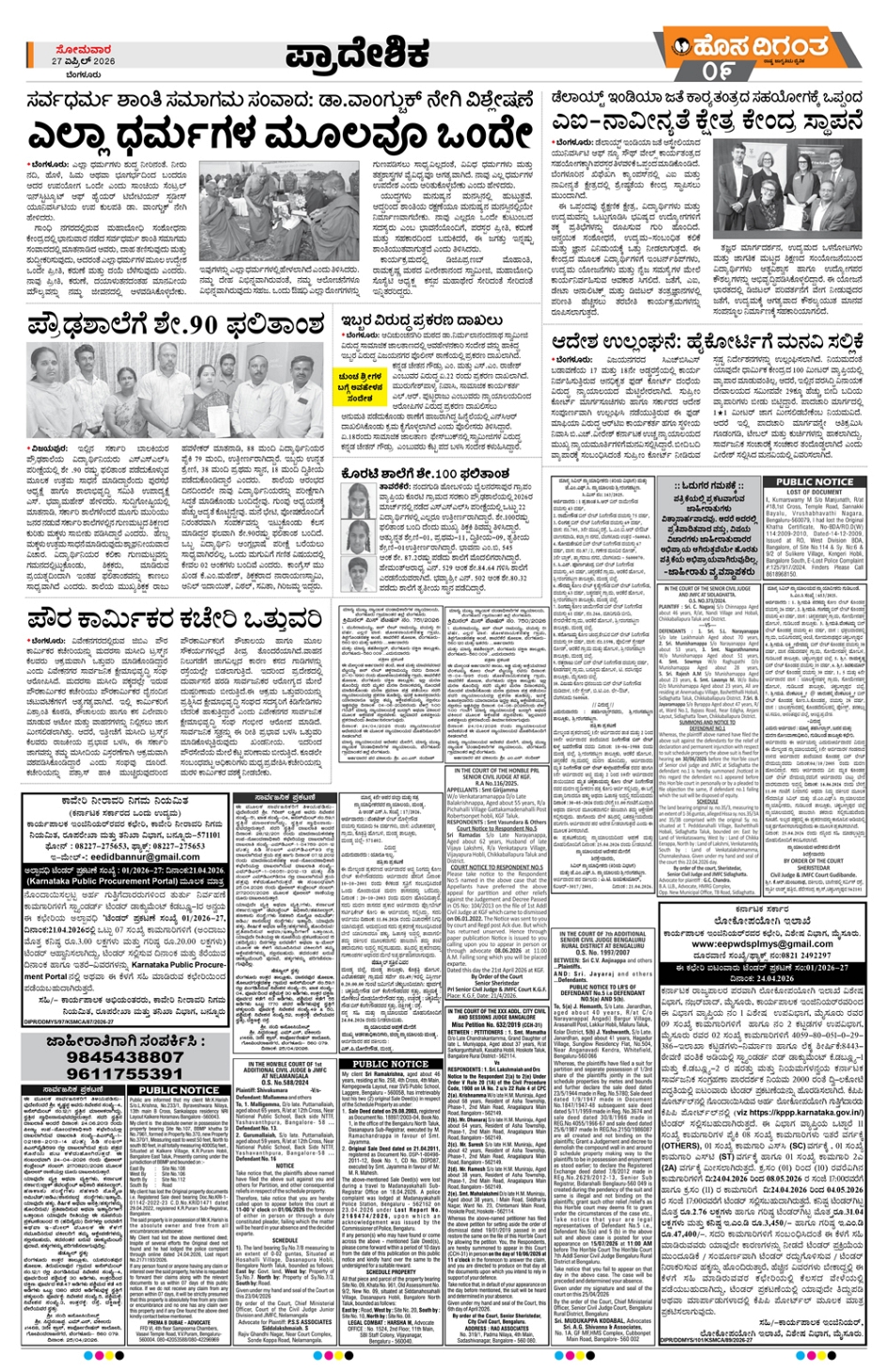 BENGALURU Page: 9 April 27, 2026 << First << 9 >> Last >> Page 1Page 2Page 3Page 4Page 5Page 6Page 7Page 8Page 9Page 10Page 11Page 12 × BENGALURU << First << 9 >> Last >> 123456789101112 SUB EDITIONS 9
