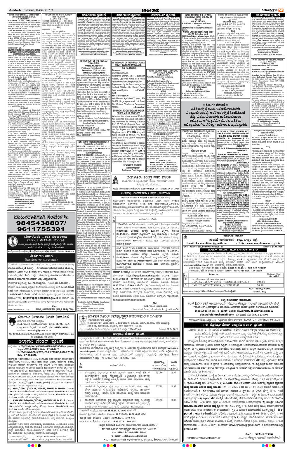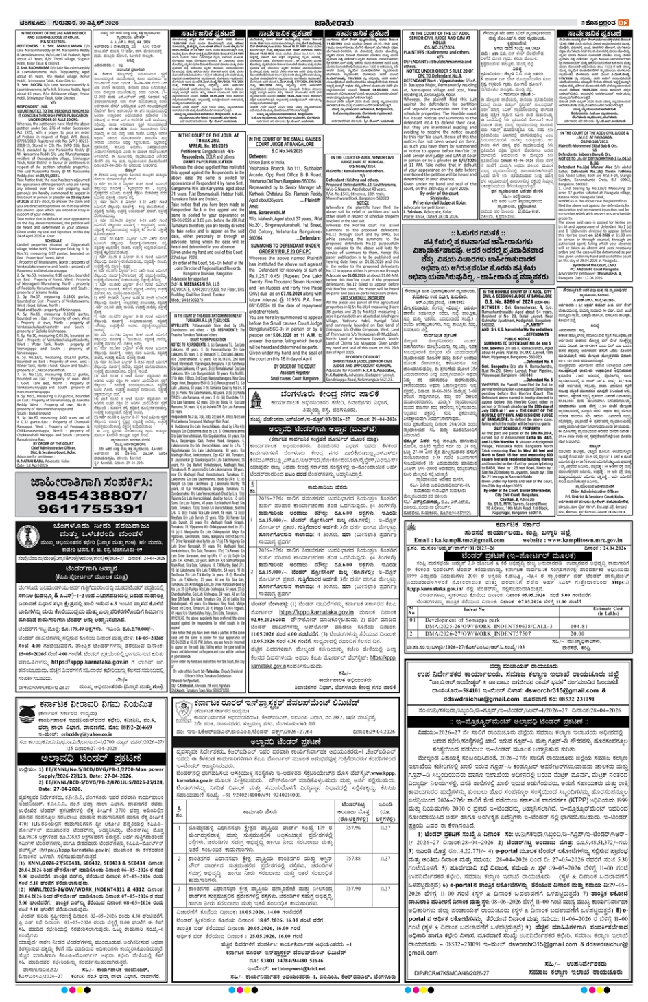 BENGALURU Page: 9 April 30, 2026 << First << 9 >> Last >> Page 1Page 2Page 3Page 4Page 5Page 6Page 7Page 8Page 9Page 10Page 11Page 12Page 13Page 14 × BENGALURU << First << 9 >> Last >> 1234567891011121314 SUB EDITIONS 9